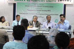 The Environment and Social Development Organization (ESDO) in association with Bangladesh Dental Society (BDS) organized a press briefing on March 10, 2018, where BDS declared “Mercury dental amalgam should not be used in the treatment of pregnant women, nursing mother and children after June, 2018.”
